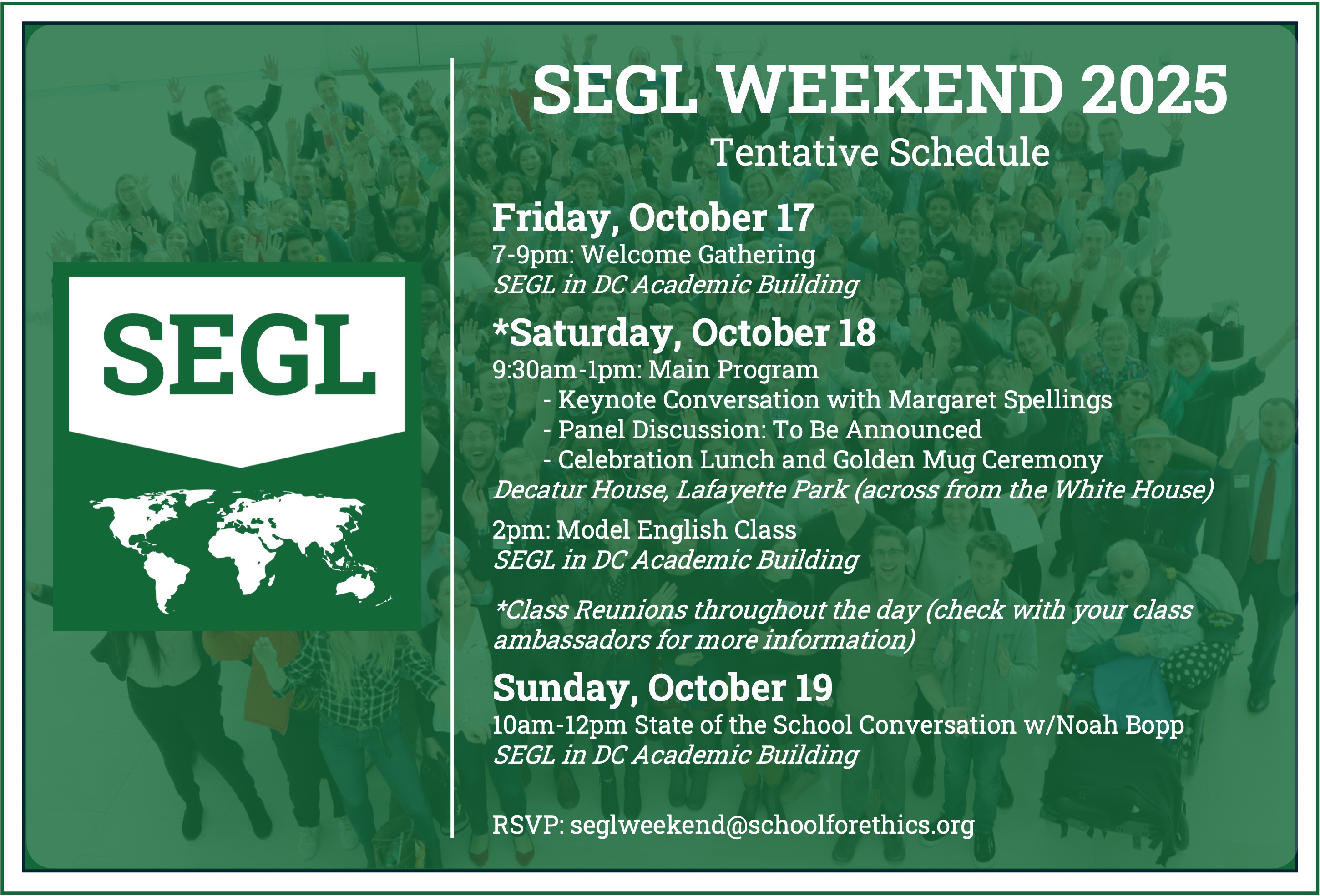 If you are not able to attend but would like to make a gift to support SEGL, you can do so here (select “SEGL Weekend” or the area of your choice!).
